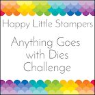 DeleteGreat card. Love the simplicity here - with the elements, the design, the colors - and you've done a great job in showing them off. Thank you for joining us at the Happy Little Stampers Anything Goes with Dies challenge!